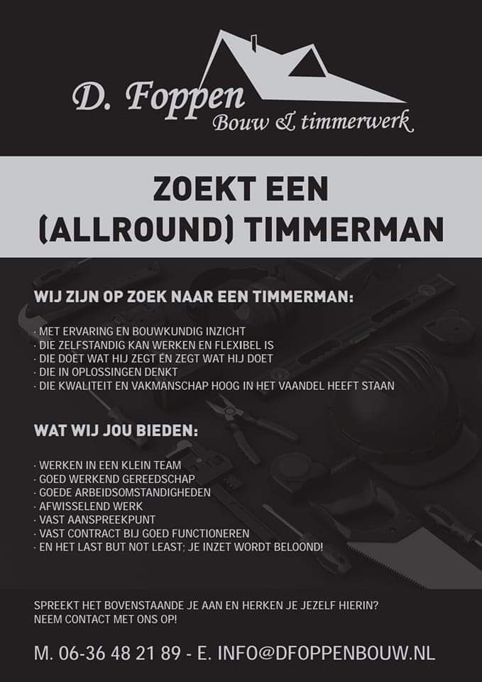 Werken bij Foppen Bouw B.V. betekent werken aan mooie projecten in de regio Nunspeet en de Veluwe. We bouwen, verbouwen en renoveren met oog voor kwaliteit en vakmanschap — en dat doen we met een hecht team waarop je kunt vertrouwen.