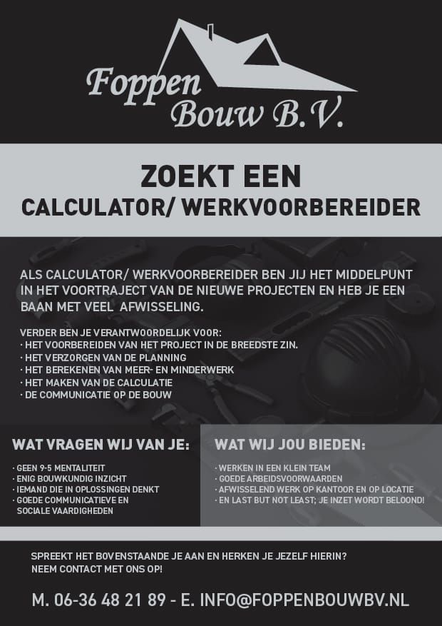 Bekijk hieronder onze actuele vacatures of stuur een open sollicitatie als je denkt dat jij goed past binnen Foppen Bouw